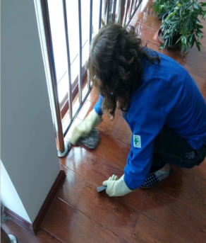 近期集团总部墙面整修:刮腻子。工人们一遍又一遍的刮,保洁大姐们便一遍又一遍的擦。过程中腻子难免会滴到地上,各楼层的保洁大姐便蹲下来认真的一个白点一个白点的擦,擦不掉便先刮一下再擦。擦了地面擦墙面,当你走进干净整洁的楼道里时也许还不曾注意到污点的存在,那是因为她们已经默默地清理干净。这伙保洁大姐干好自己本职工作的同时,还兼顾保持好空闲会议室、办公室的卫生。面对突然增加的工作,他们没有任何怨言,默默地做什么也不说。